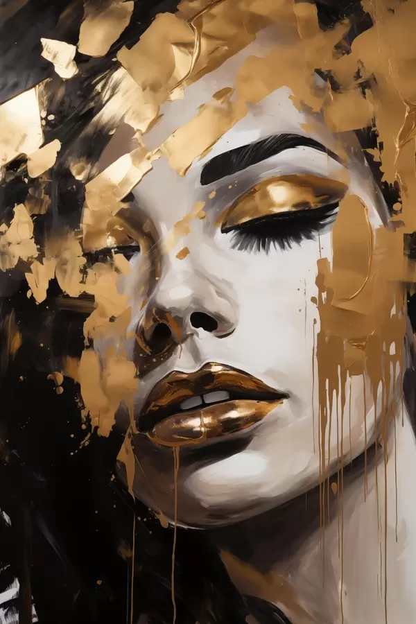 Poster Retrato abstracto de una mujer con ricas pinceladas en tonos cálidos, que crean una imagen vibrante y dramática. Nr f42619