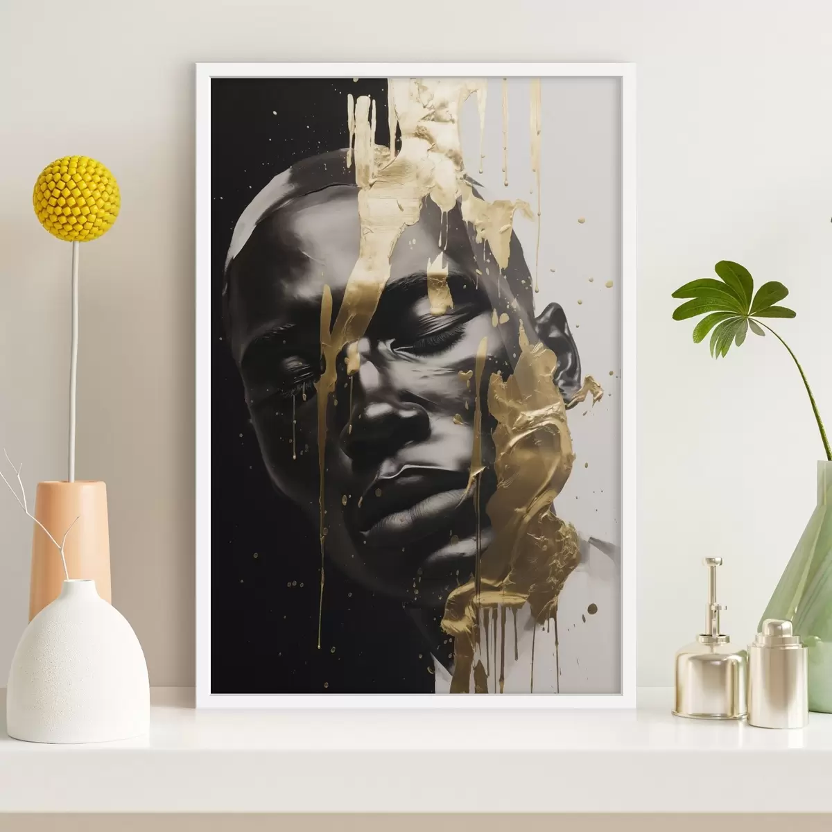 Poster Retrato abstracto de un hombre en suaves tonos blanco y negro, realzados por brillantes pinceladas de colores cálidos que crean un efecto dinámico. Nr f42623