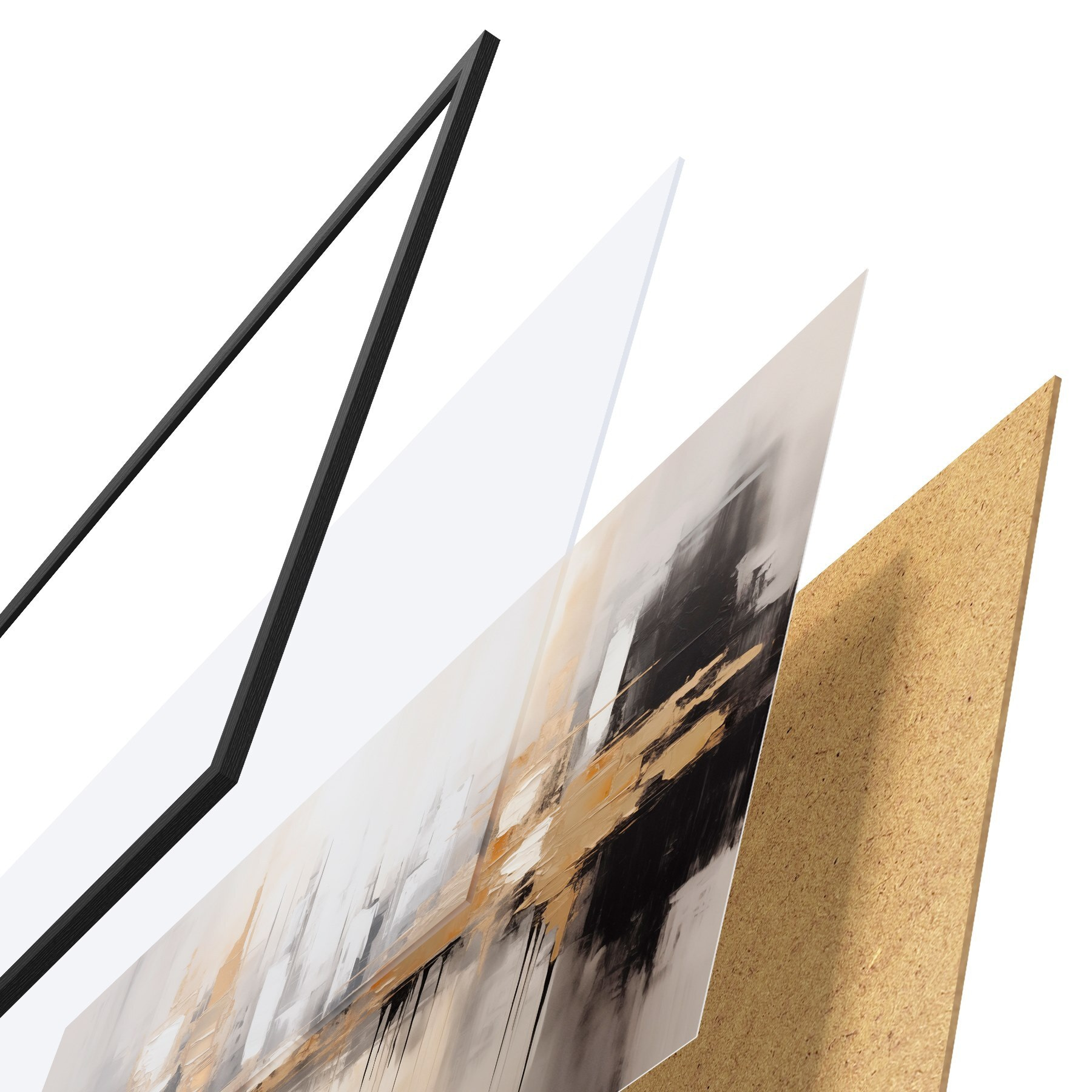 El póster consta de marco, plexiglás, imagen impresa y soporte de aglomerado. El póster puede colgarse inmediatamente en la pared gracias a los soportes de la parte posterior.