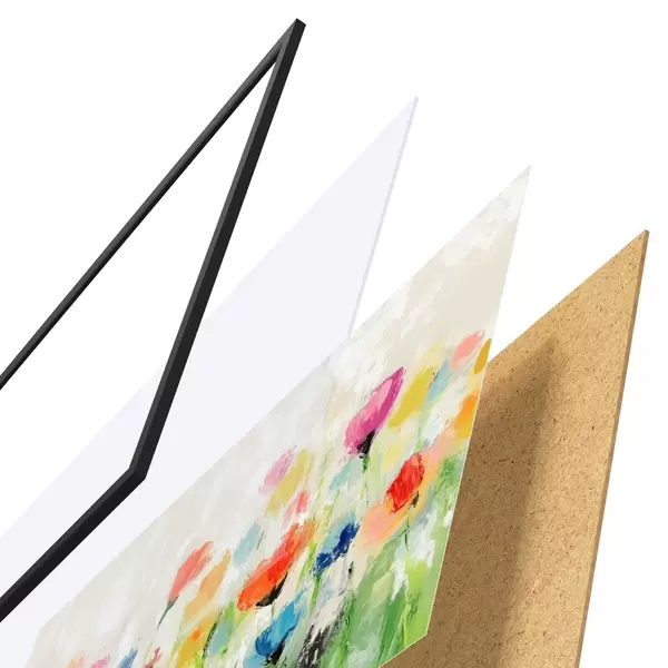 El póster consta de marco, plexiglás, imagen impresa y soporte de aglomerado. El póster puede colgarse inmediatamente en la pared gracias a los soportes de la parte posterior.