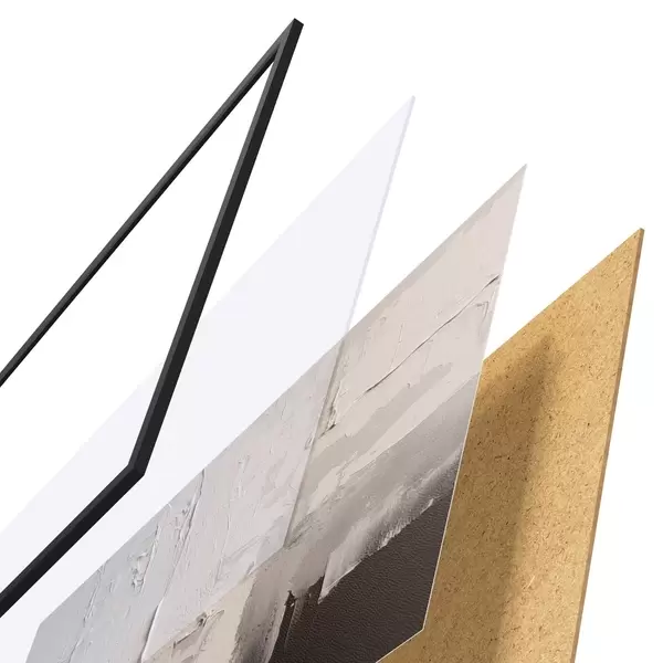 El póster consta de marco, plexiglás, imagen impresa y soporte de aglomerado. El póster puede colgarse inmediatamente en la pared gracias a los soportes de la parte posterior.