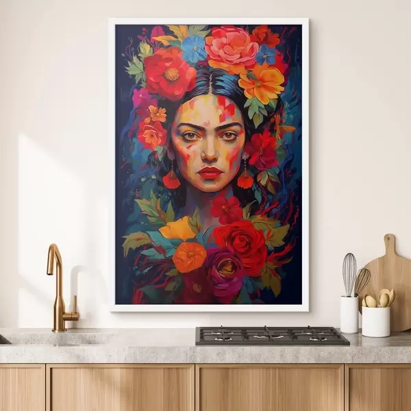Poster Retrato de mujer con marco floral en estilo abstracto brillante f42653