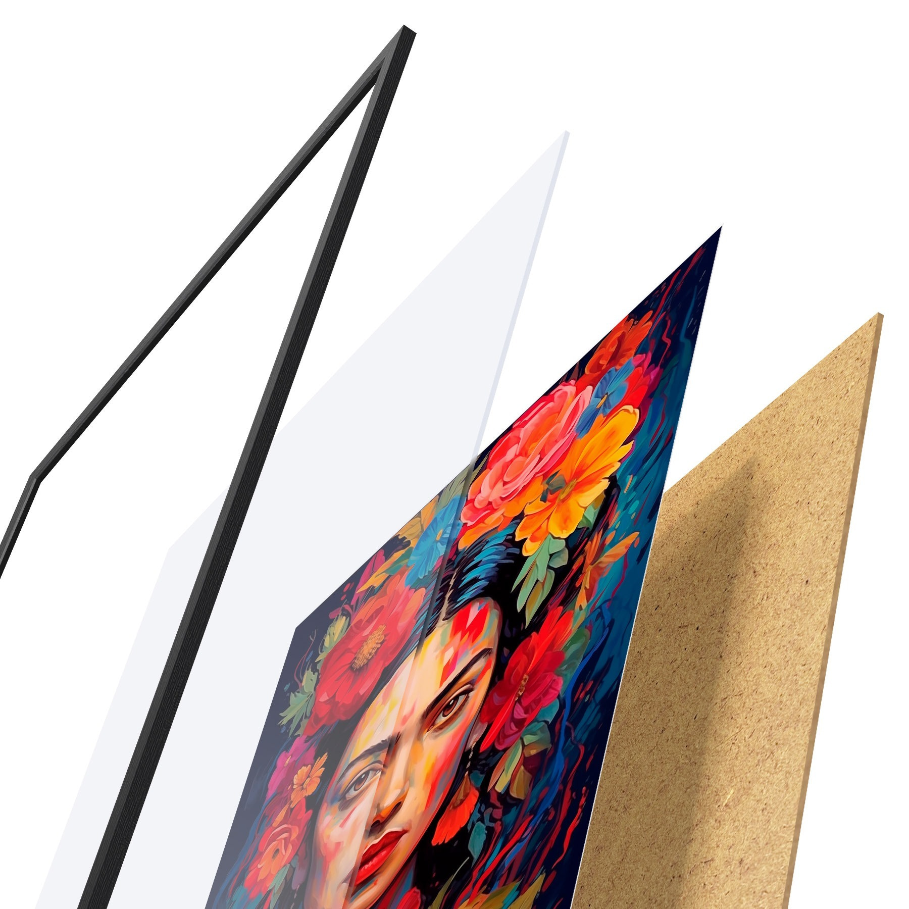 El póster consta de marco, plexiglás, imagen impresa y soporte de aglomerado. El póster puede colgarse inmediatamente en la pared gracias a los soportes de la parte posterior.