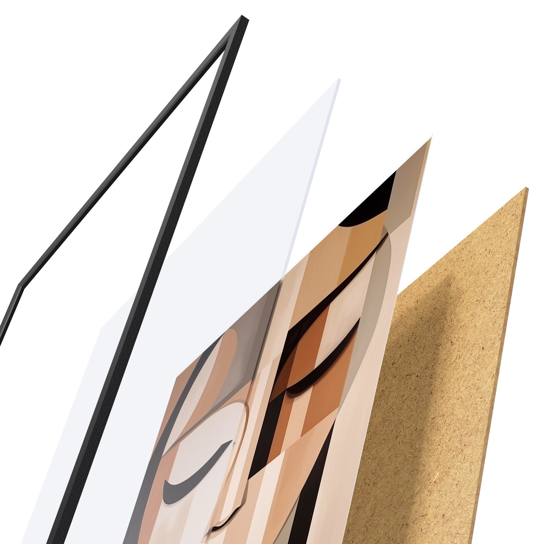 El póster consta de marco, plexiglás, imagen impresa y soporte de aglomerado. El póster puede colgarse inmediatamente en la pared gracias a los soportes de la parte posterior.