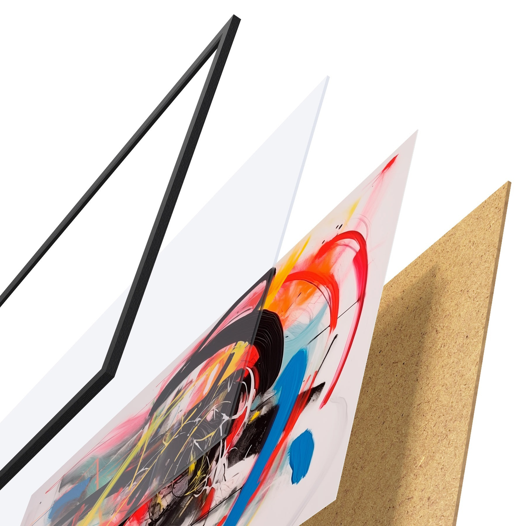 El póster consta de marco, plexiglás, imagen impresa y soporte de aglomerado. El póster puede colgarse inmediatamente en la pared gracias a los soportes de la parte posterior.