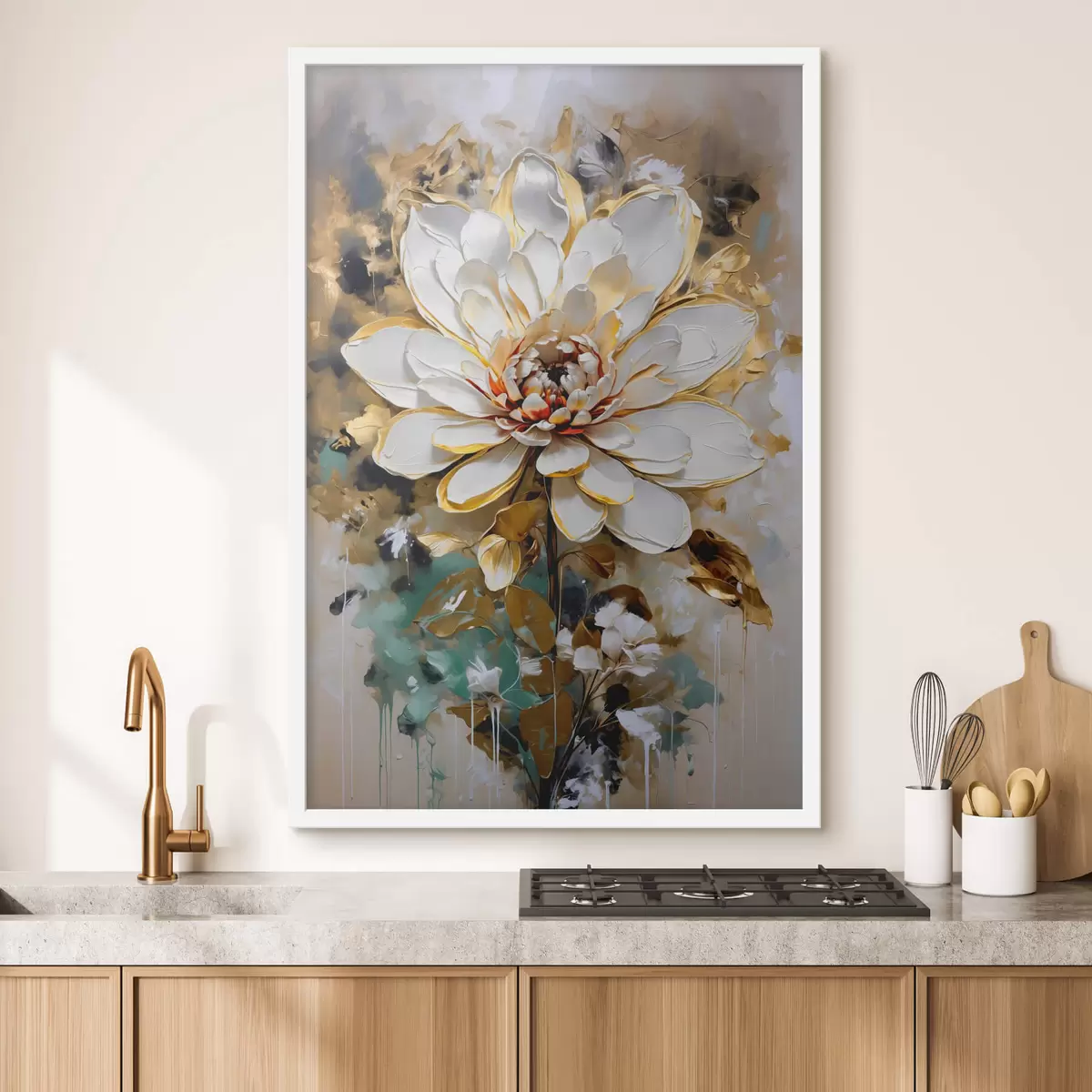 Poster Flor abstracta con salpicaduras de pintura de imitación en el fondo Nr f42707