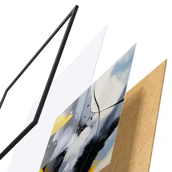 El póster consta de marco, plexiglás, imagen impresa y soporte de aglomerado. El póster puede colgarse inmediatamente en la pared gracias a los soportes de la parte posterior.