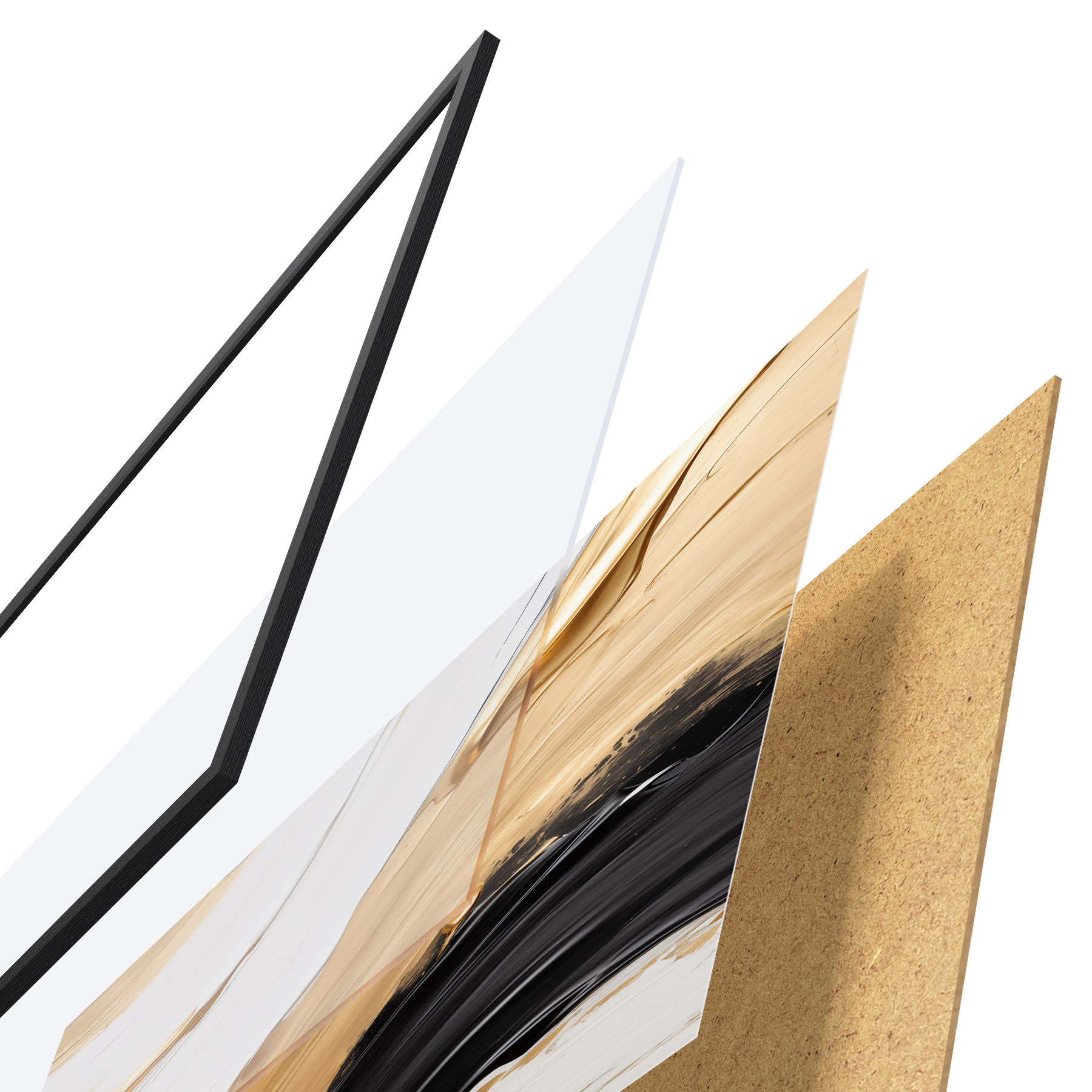 El póster consta de marco, plexiglás, imagen impresa y soporte de aglomerado. El póster puede colgarse inmediatamente en la pared gracias a los soportes de la parte posterior.