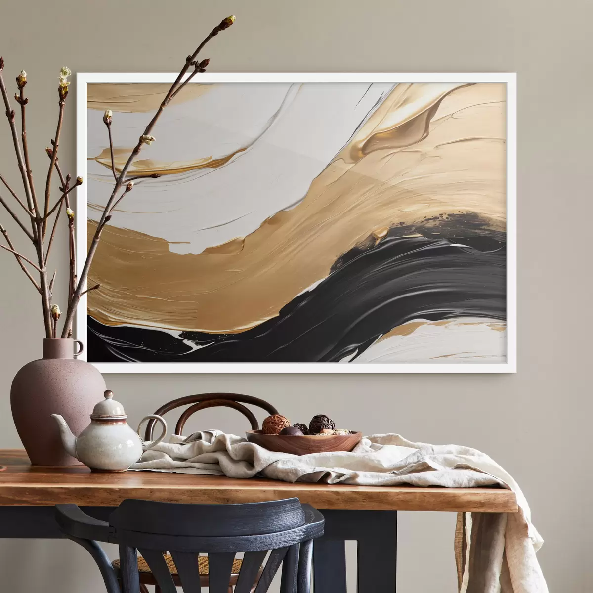Poster Composición abstracta con atrevidas pinceladas de pintura blanca, amarilla y negra Nr f42717