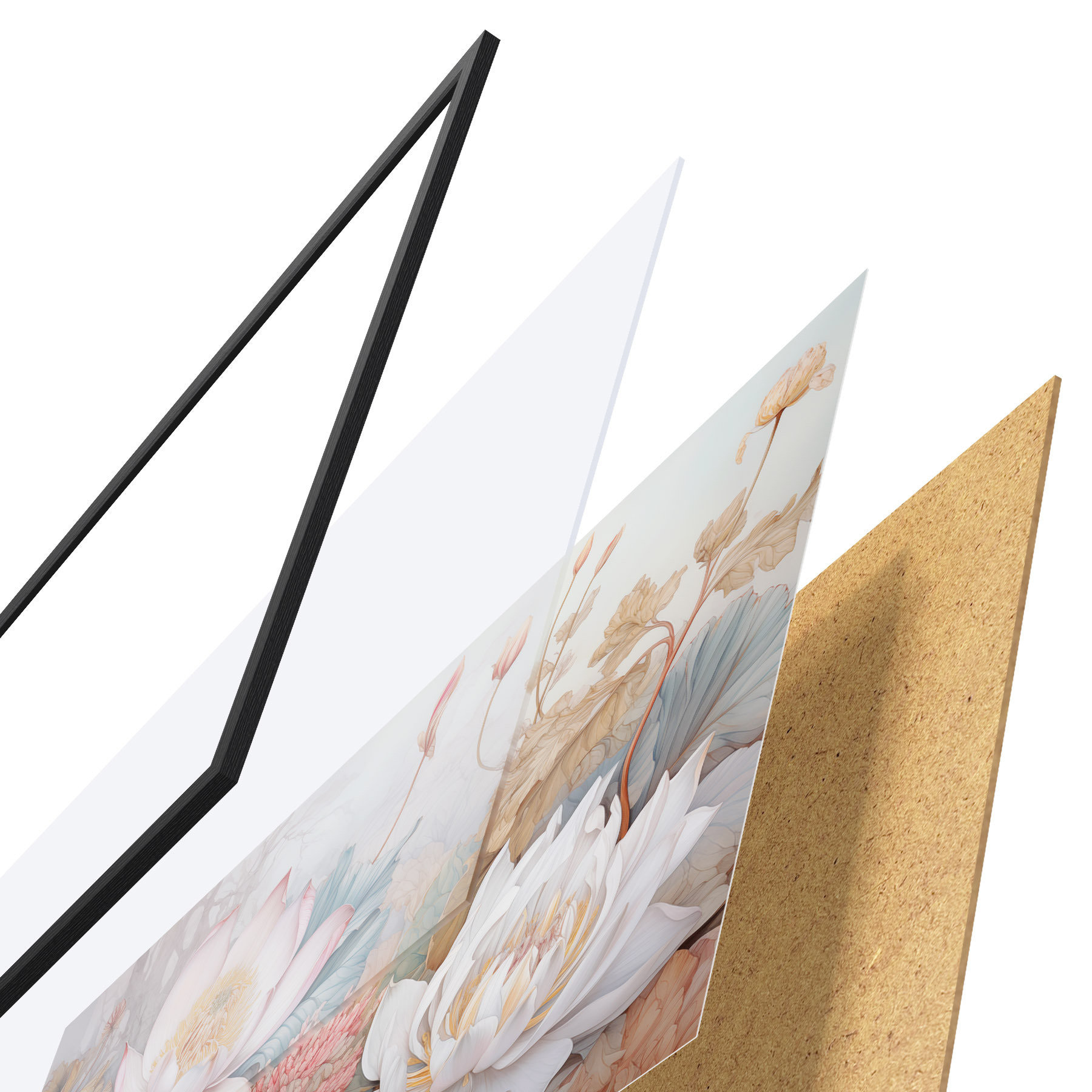 El póster consta de marco, plexiglás, imagen impresa y soporte de aglomerado. El póster puede colgarse inmediatamente en la pared gracias a los soportes de la parte posterior.