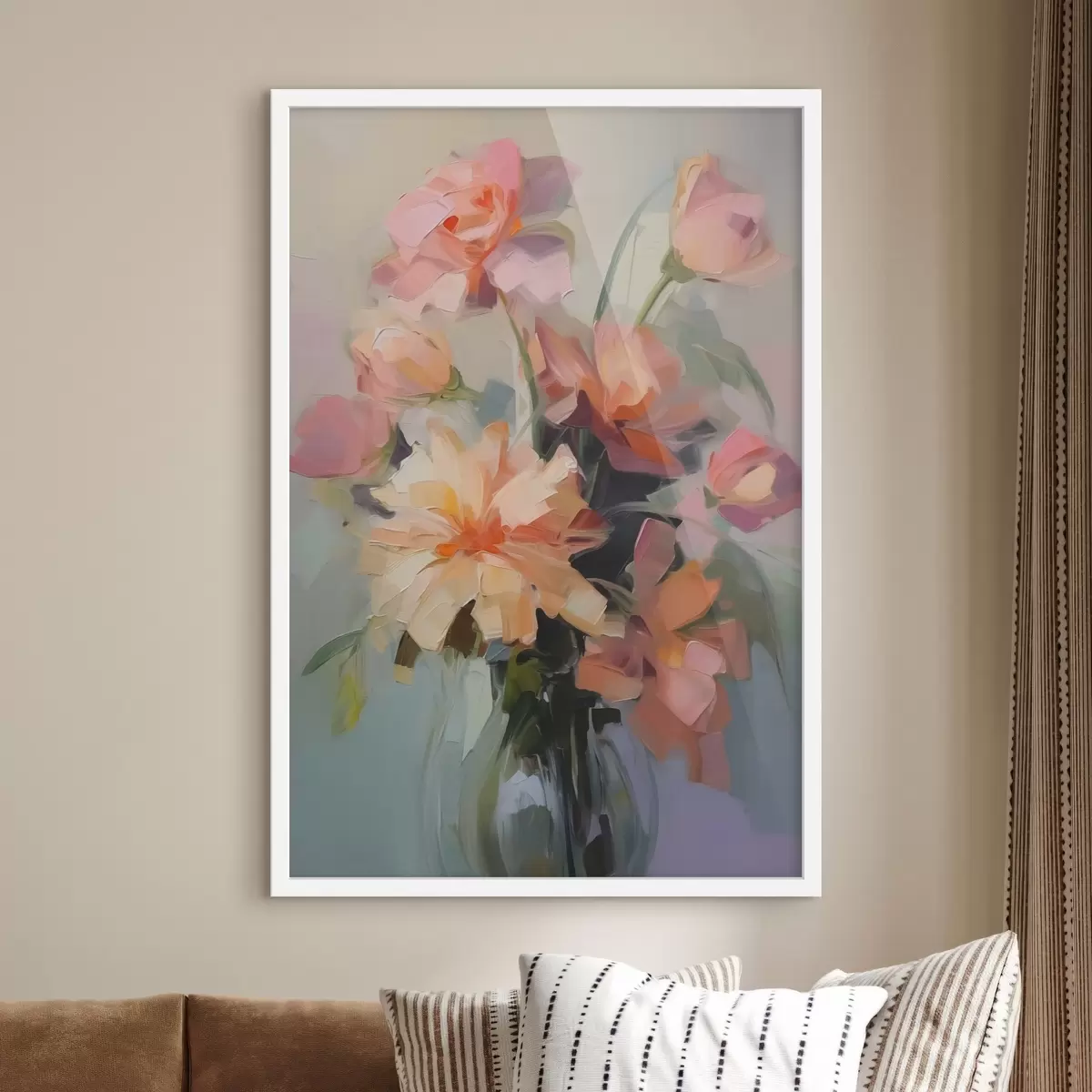 Poster Crisantemos en un jarrón imitación de trazos de pintura f42745