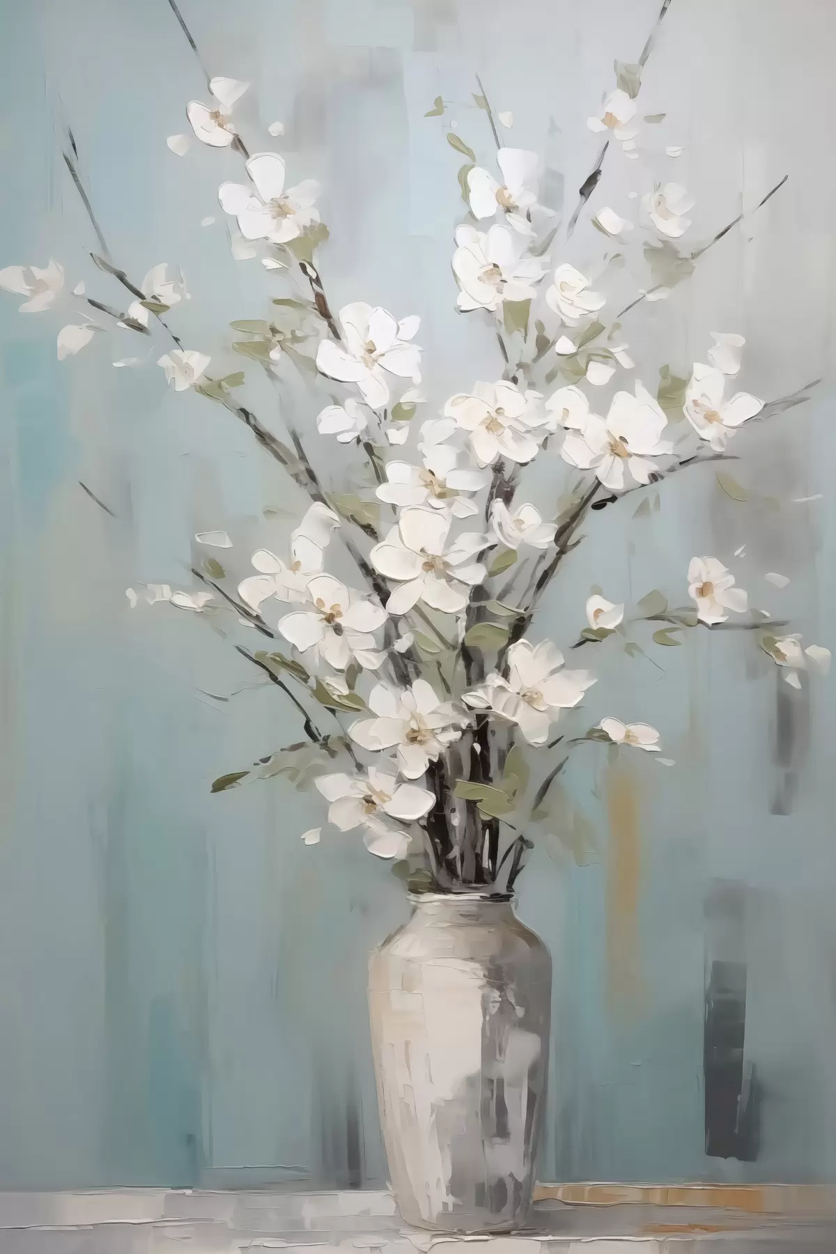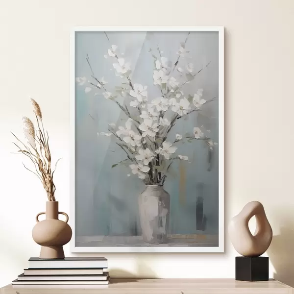 Poster Ramas con flores blancas en un jarrón Nr f42746