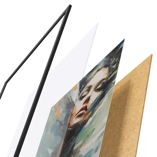El póster consta de marco, plexiglás, imagen impresa y soporte de aglomerado. El póster puede colgarse inmediatamente en la pared gracias a los soportes de la parte posterior.