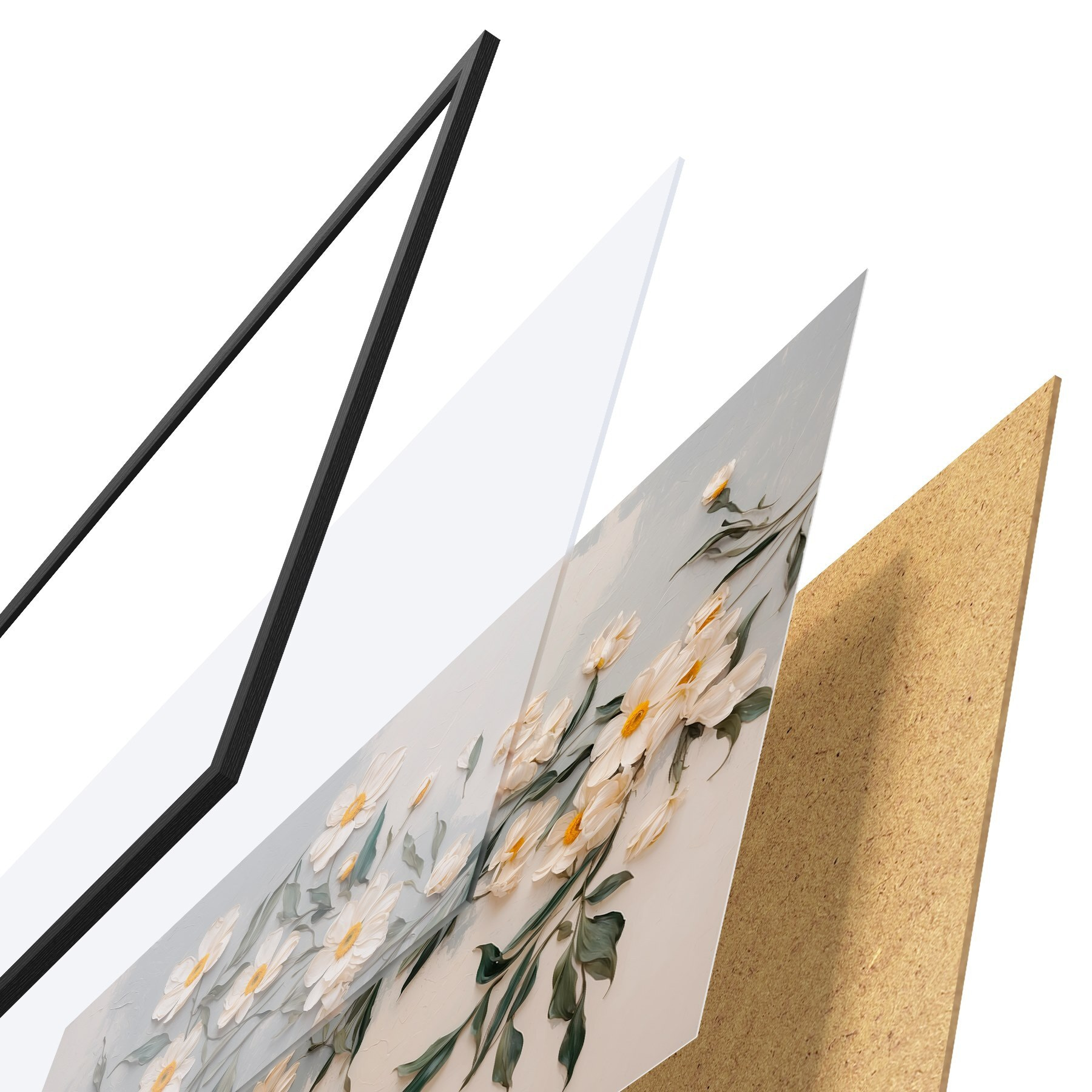 El póster consta de marco, plexiglás, imagen impresa y soporte de aglomerado. El póster puede colgarse inmediatamente en la pared gracias a los soportes de la parte posterior.