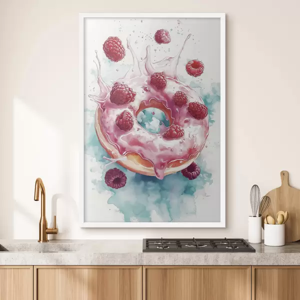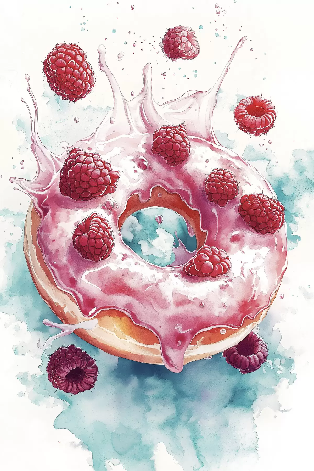 Poster Donut de acuarela con frambuesas, colores rosa y azul Nr f42787