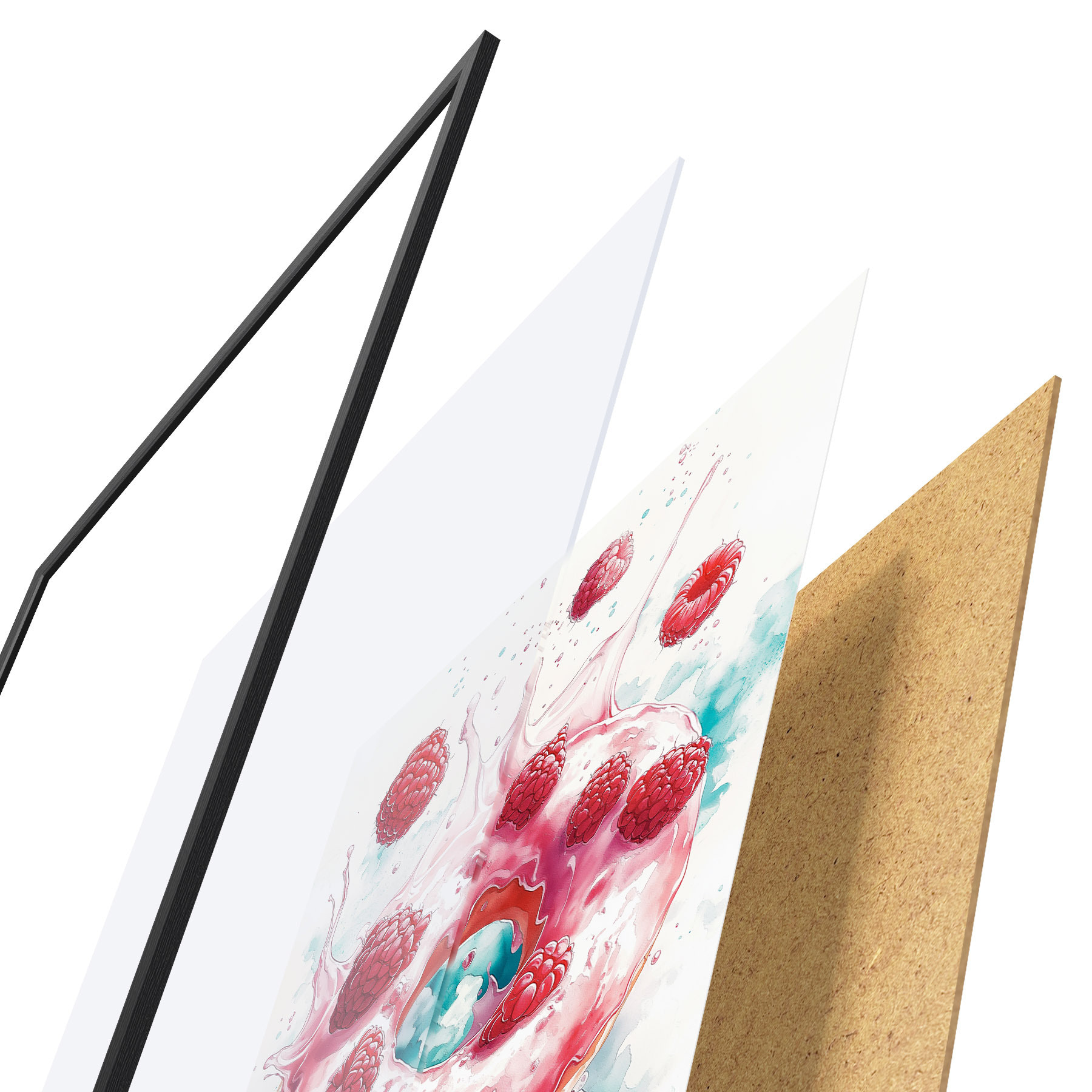 Poster Donut de acuarela con frambuesas, colores rosa y azul f42787