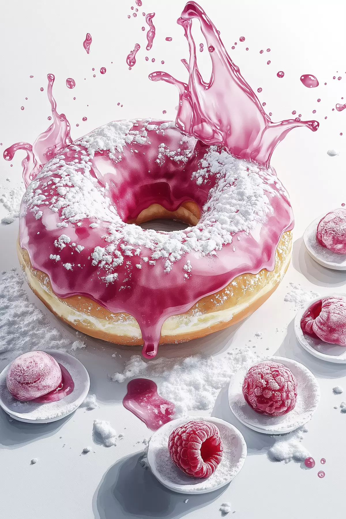 Poster Donut realista con bayas y glaseado rosa f42790