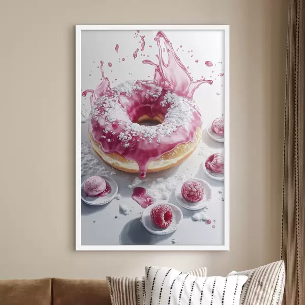 Poster Donut realista con bayas y glaseado rosa Nr f42790