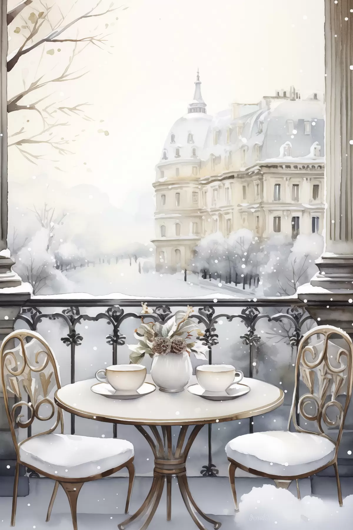 Poster Bonito café, tazas de té, estilo bohemio, acuarela, estética invernal Nr f42796