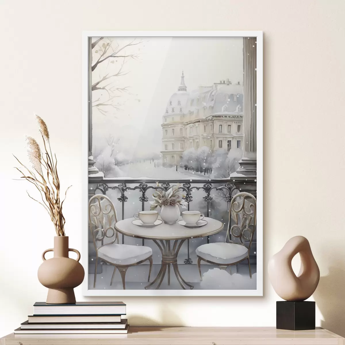 Poster Bonito café, tazas de té, estilo bohemio, acuarela, estética invernal f42796