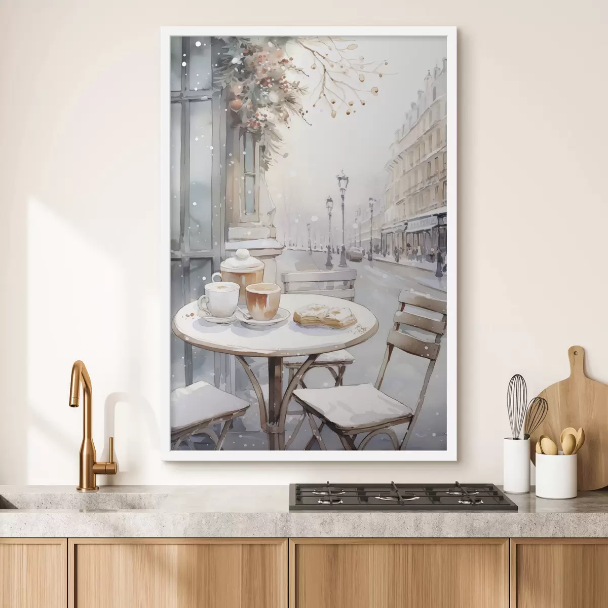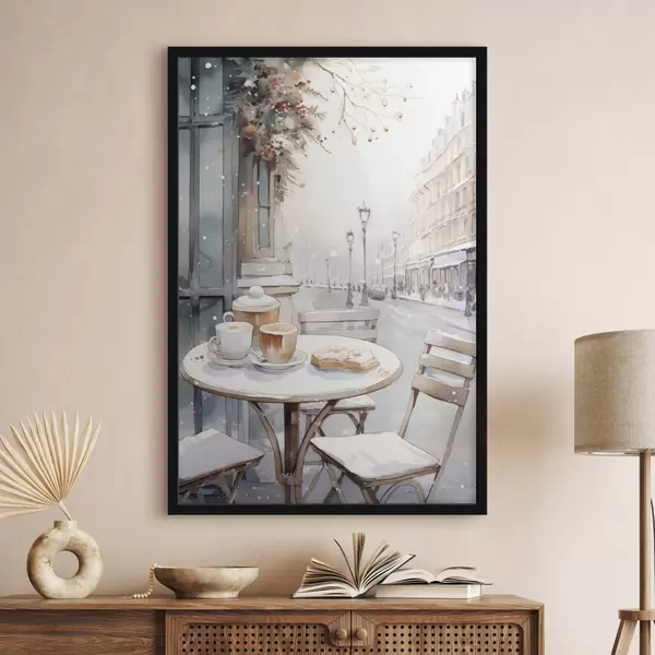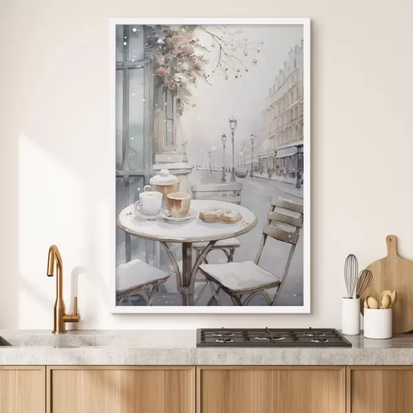 Poster Estética cafetería callejera, Francia, panadería fresca, dibujo estilo acuarela Nr f42798