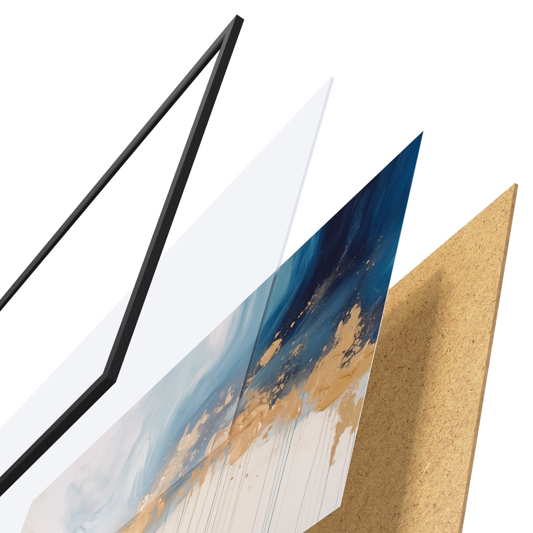 El póster consta de marco, plexiglás, imagen impresa y soporte de aglomerado. El póster puede colgarse inmediatamente en la pared gracias a los soportes de la parte posterior.
