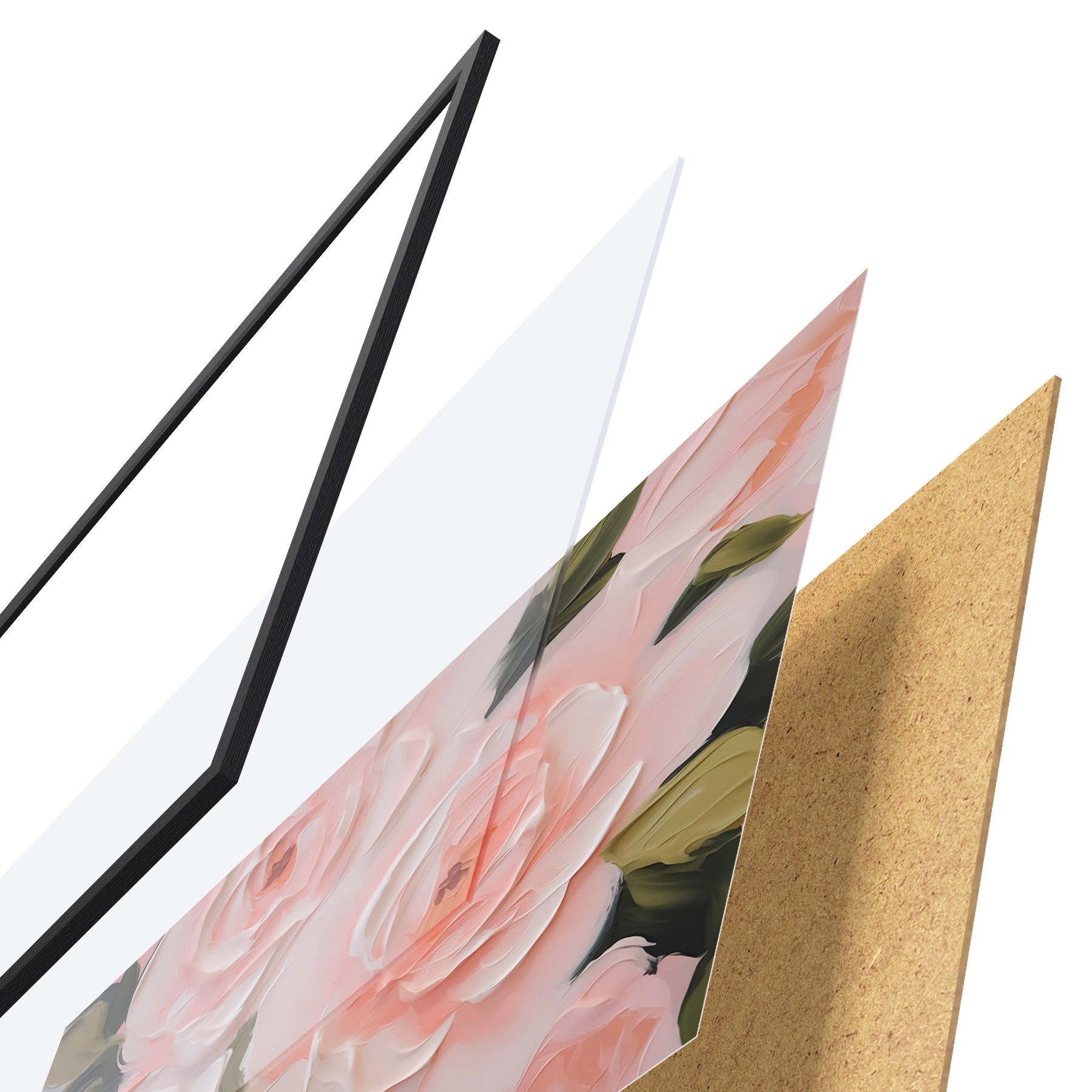 El póster consta de marco, plexiglás, imagen impresa y soporte de aglomerado. El póster puede colgarse inmediatamente en la pared gracias a los soportes de la parte posterior.