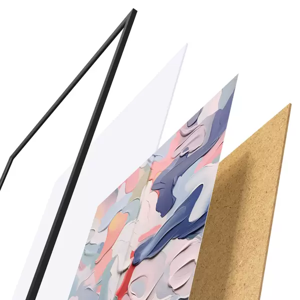 El póster consta de marco, plexiglás, imagen impresa y soporte de aglomerado. El póster puede colgarse inmediatamente en la pared gracias a los soportes de la parte posterior.
