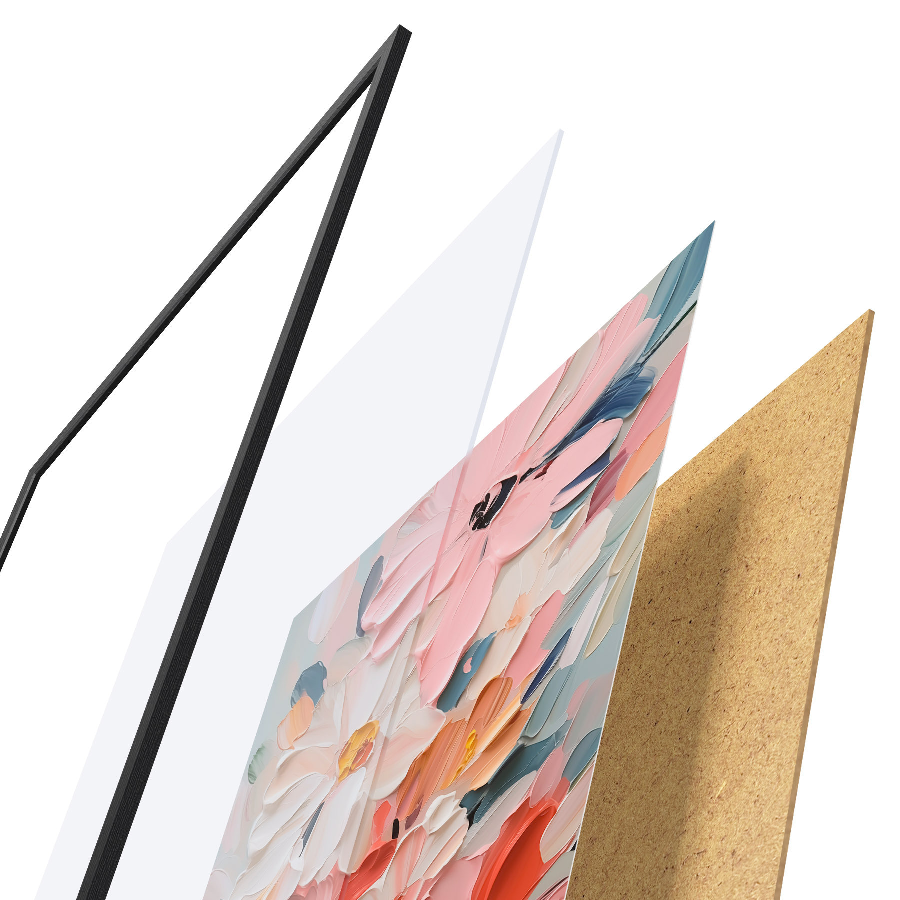Vendemos cuadros en bastidor: se trata de un marco de madera sobre el que se extiende el lienzo. Este cuadro no necesita marco; puedes colgarlo directamente en la pared.
