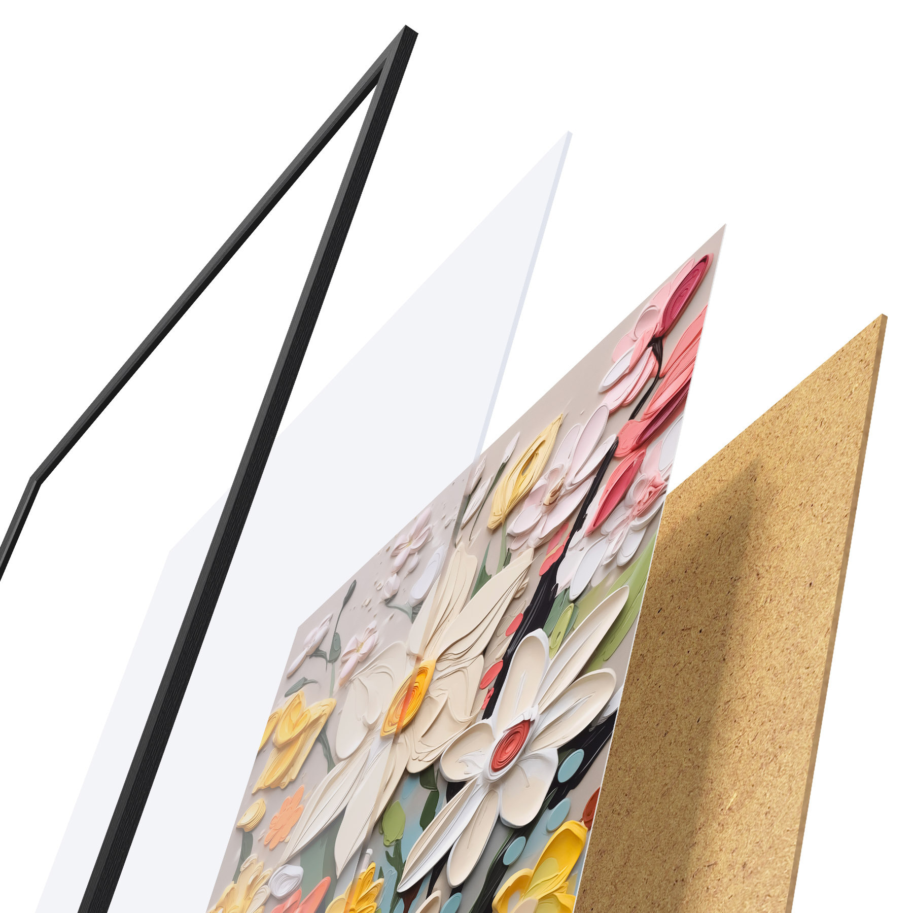 El póster consta de marco, plexiglás, imagen impresa y soporte de aglomerado. El póster puede colgarse inmediatamente en la pared gracias a los soportes de la parte posterior.
