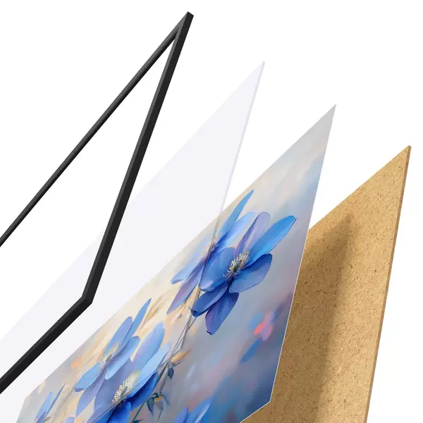 El póster consta de marco, plexiglás, imagen impresa y soporte de aglomerado. El póster puede colgarse inmediatamente en la pared gracias a los soportes de la parte posterior.