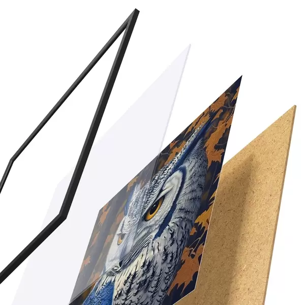 El póster consta de marco, plexiglás, imagen impresa y soporte de aglomerado. El póster puede colgarse inmediatamente en la pared gracias a los soportes de la parte posterior.