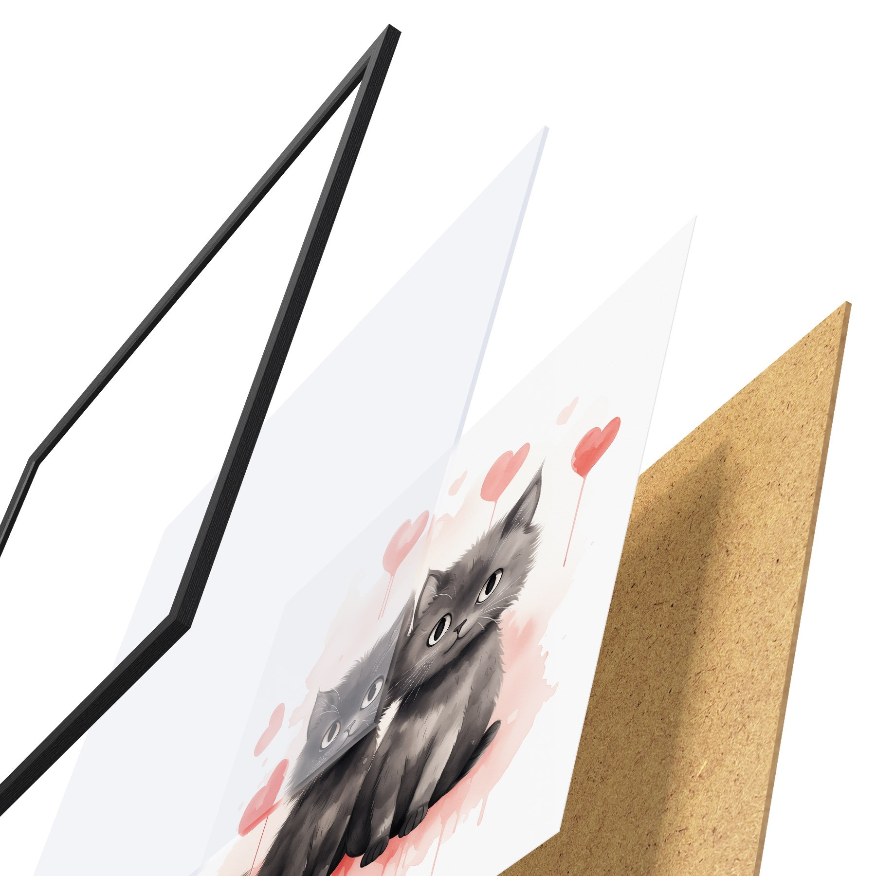 El póster consta de marco, plexiglás, imagen impresa y soporte de aglomerado. El póster puede colgarse inmediatamente en la pared gracias a los soportes de la parte posterior.
