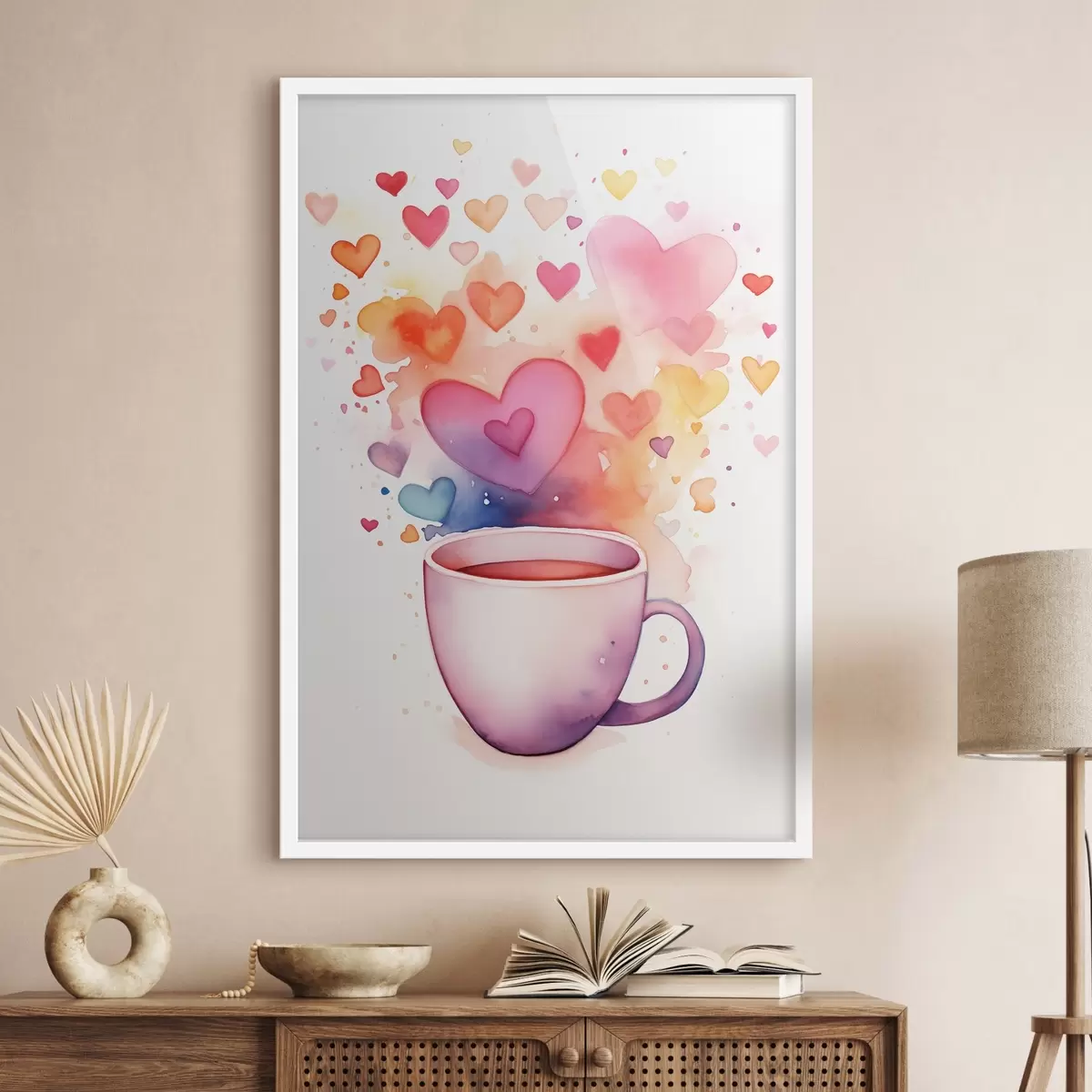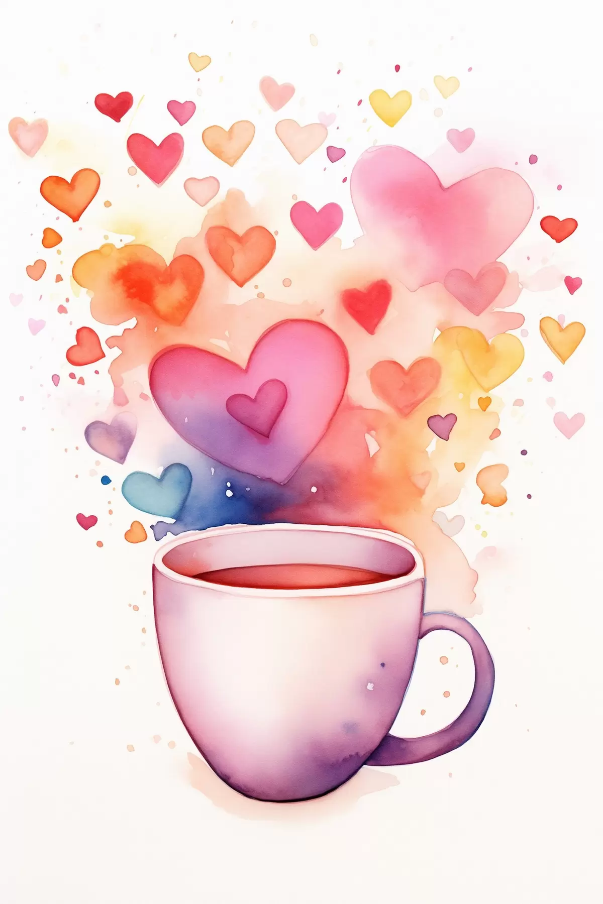 Poster Una taza sobre un fondo de corazones de acuarela Nr f42869