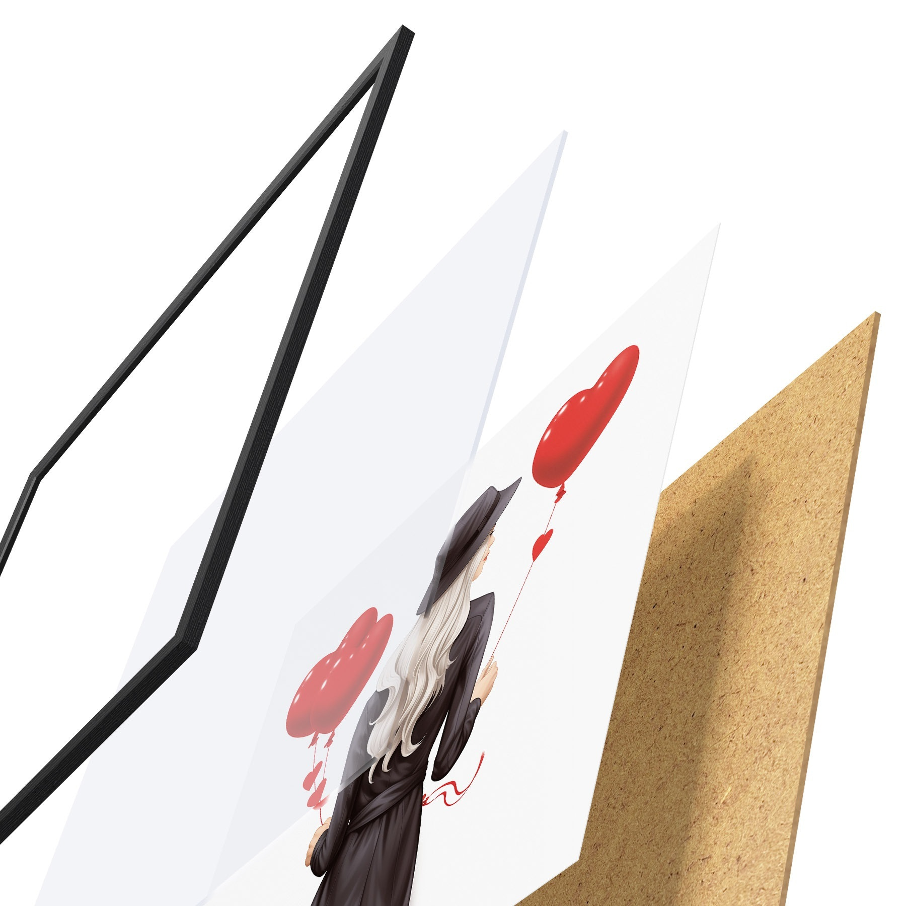 El póster consta de marco, plexiglás, imagen impresa y soporte de aglomerado. El póster puede colgarse inmediatamente en la pared gracias a los soportes de la parte posterior.