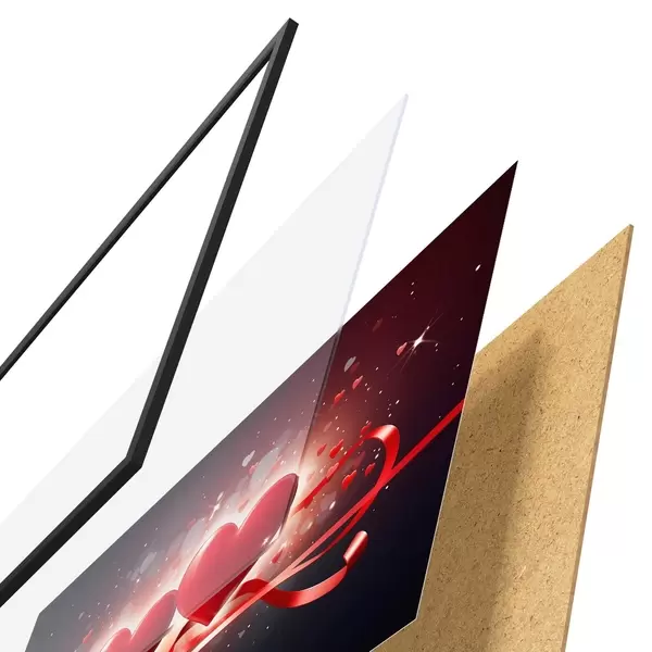 El póster consta de marco, plexiglás, imagen impresa y soporte de aglomerado. El póster puede colgarse inmediatamente en la pared gracias a los soportes de la parte posterior.