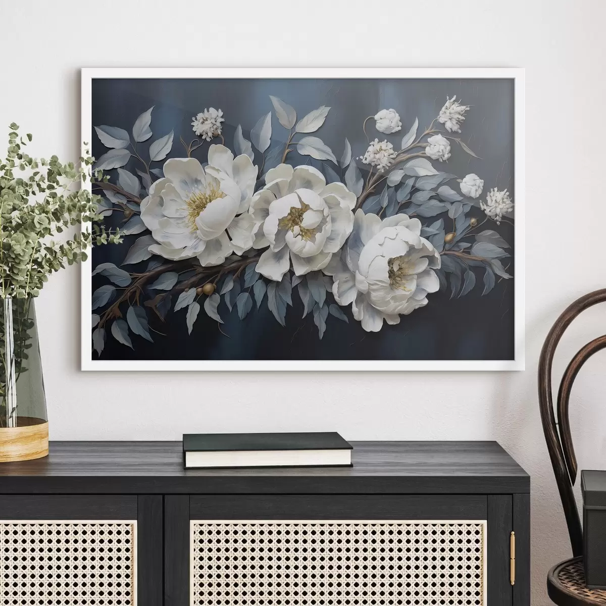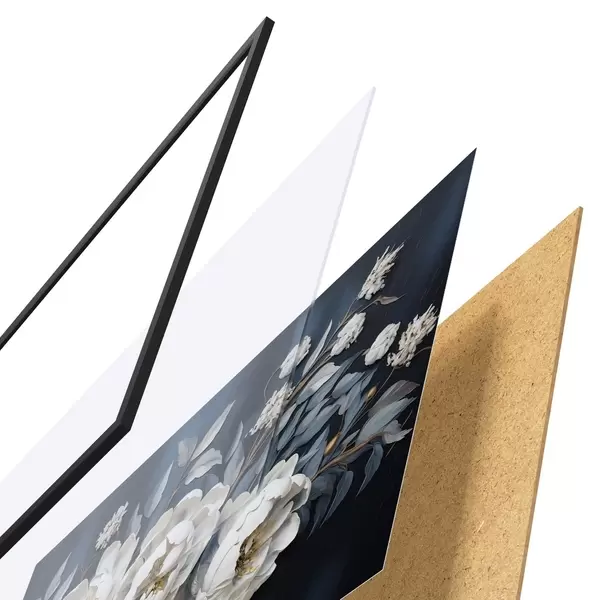 El póster consta de marco, plexiglás, imagen impresa y soporte de aglomerado. El póster puede colgarse inmediatamente en la pared gracias a los soportes de la parte posterior.