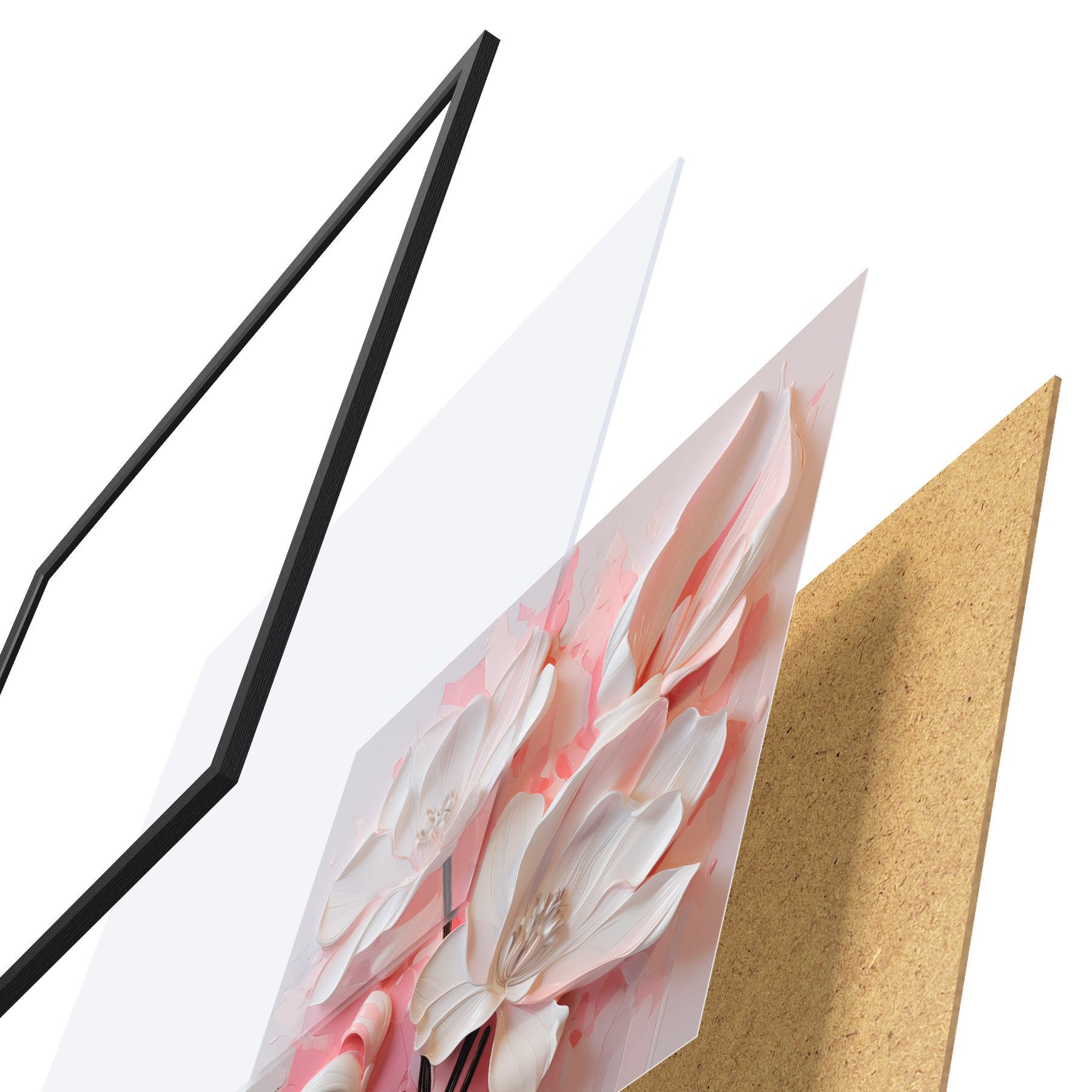 El póster consta de marco, plexiglás, imagen impresa y soporte de aglomerado. El póster puede colgarse inmediatamente en la pared gracias a los soportes de la parte posterior.