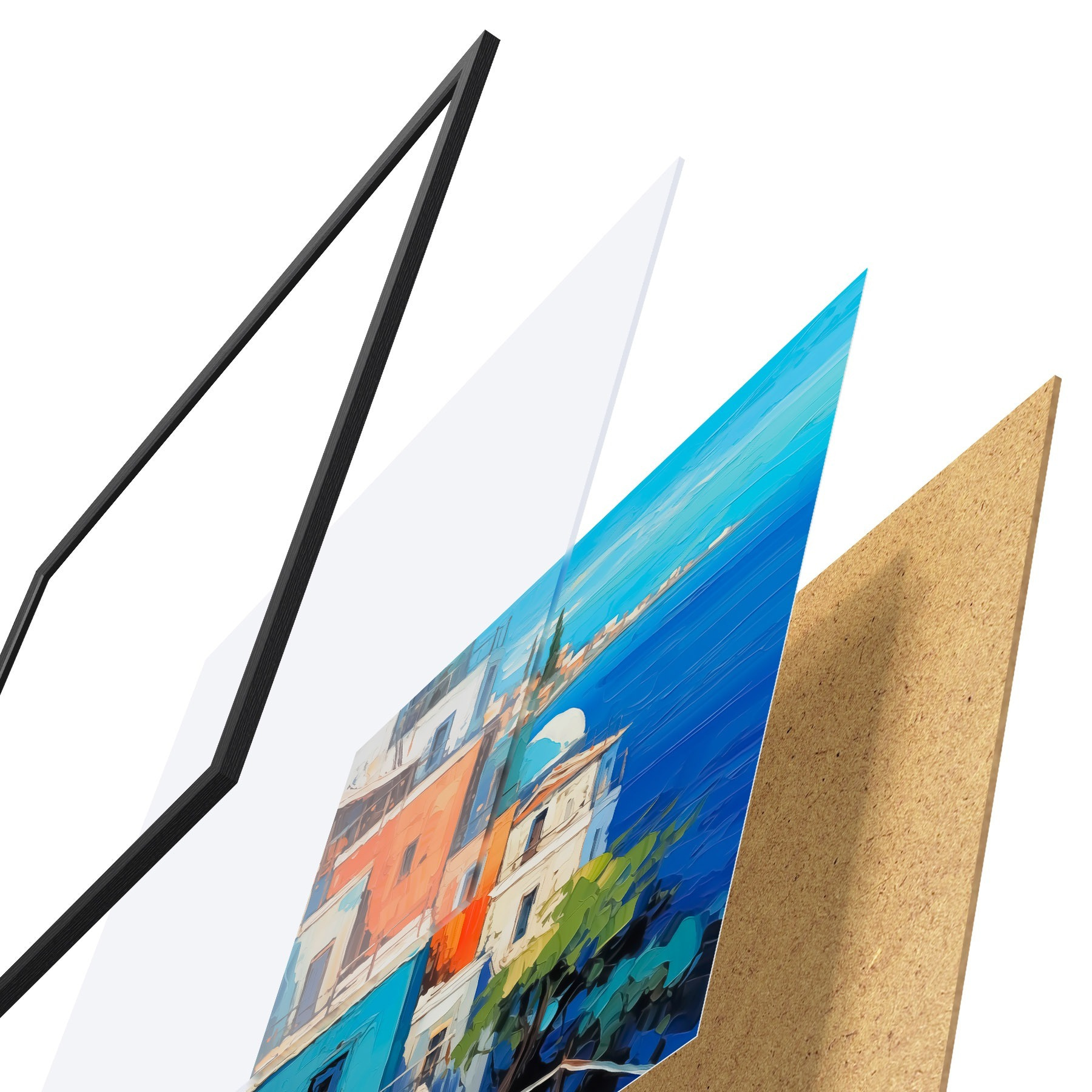 Poster Casas junto al mar imitación de trazos de pintura f42899
