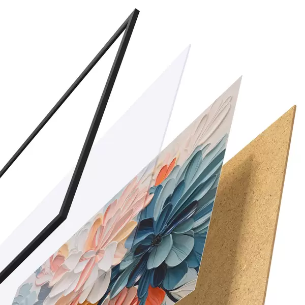 El póster consta de marco, plexiglás, imagen impresa y soporte de aglomerado. El póster puede colgarse inmediatamente en la pared gracias a los soportes de la parte posterior.