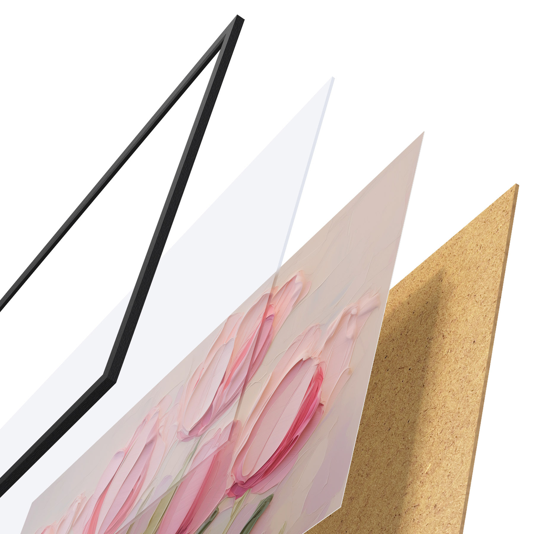 El póster consta de marco, plexiglás, imagen impresa y soporte de aglomerado. El póster puede colgarse inmediatamente en la pared gracias a los soportes de la parte posterior.
