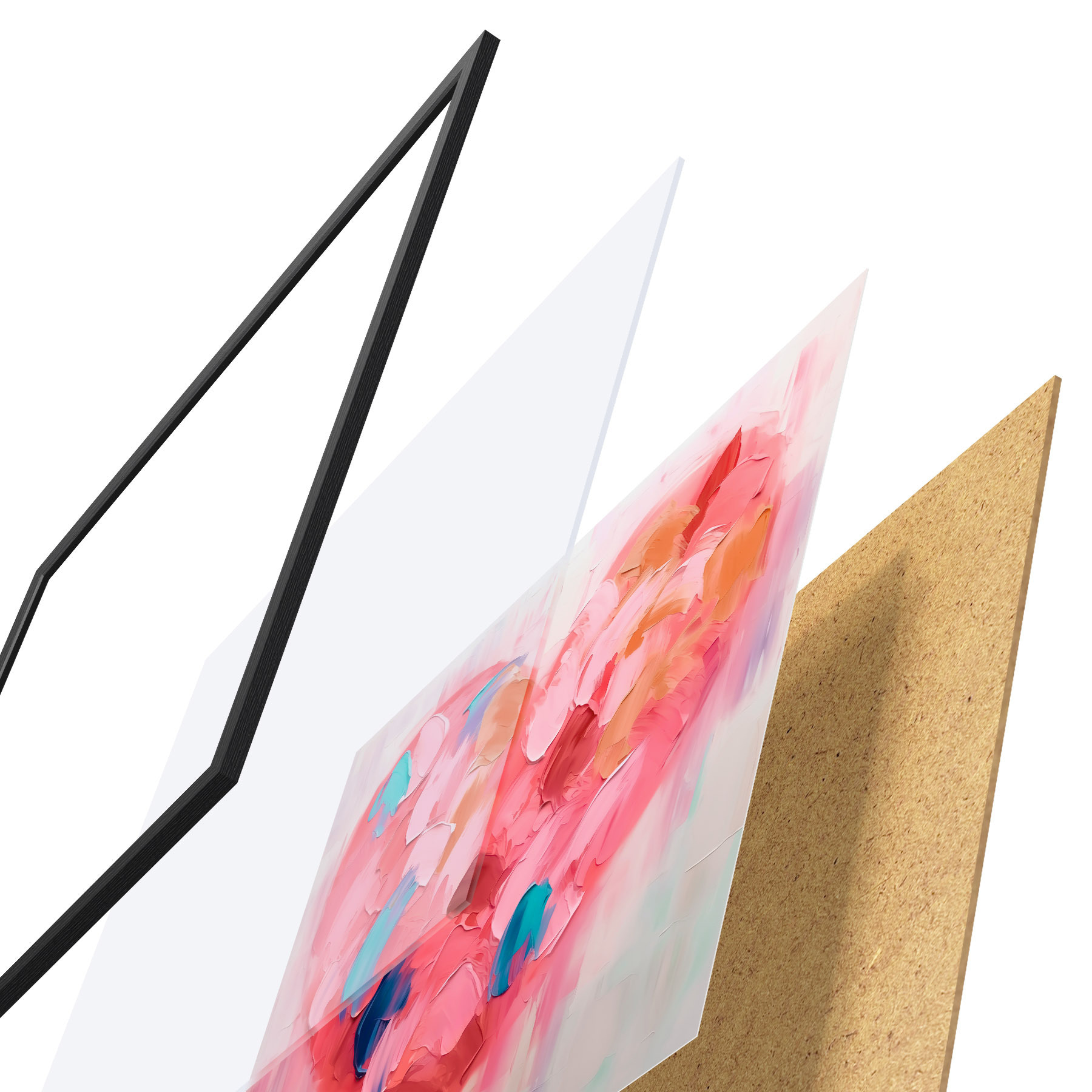Vendemos cuadros en bastidor: se trata de un marco de madera sobre el que se extiende el lienzo. Este cuadro no necesita marco; puedes colgarlo directamente en la pared.