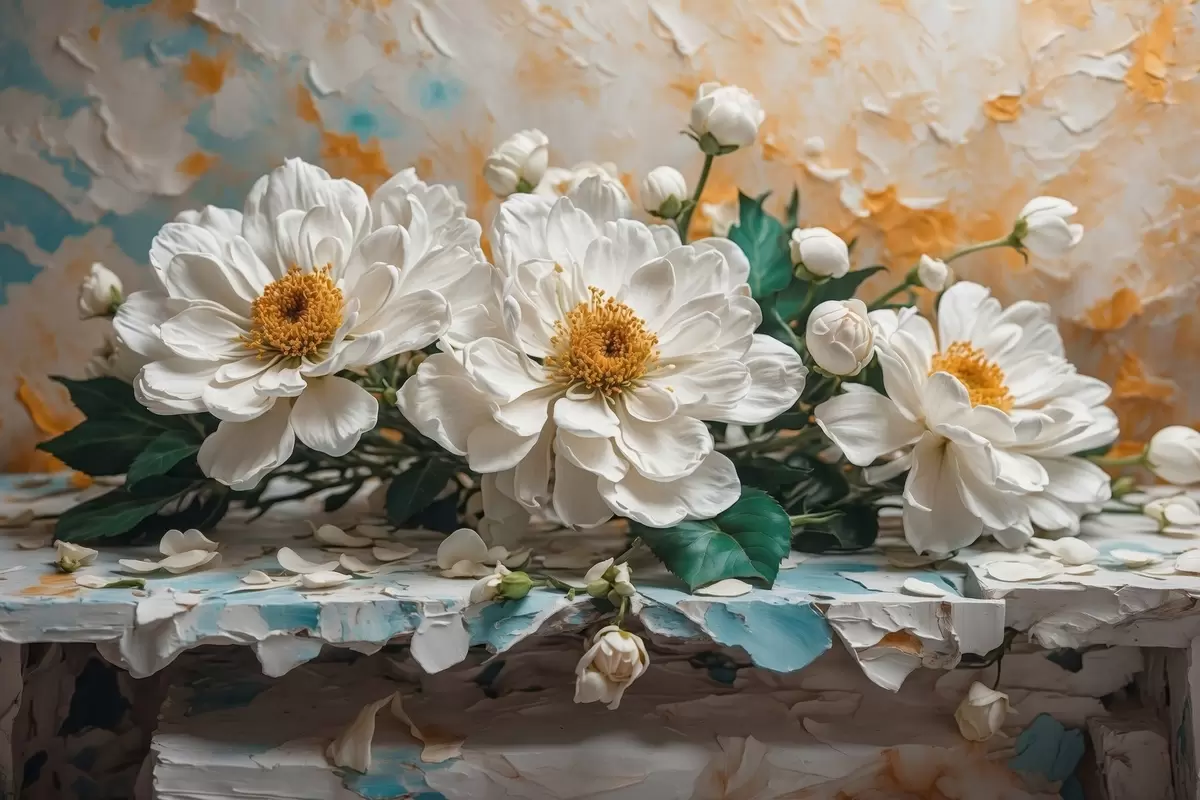 Poster Floweff blanco sobre una mesa en abftfact backgfound Nr f42924