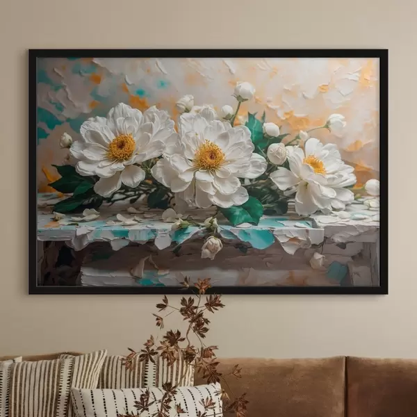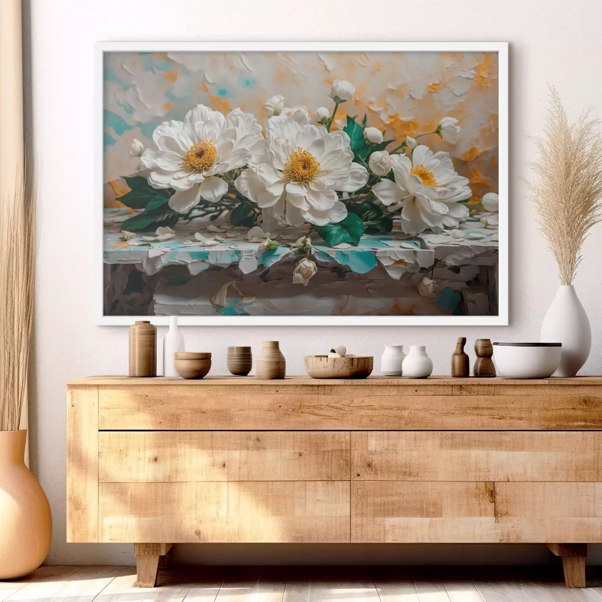 Poster Floweff blanco sobre una mesa en abftfact backgfound f42924