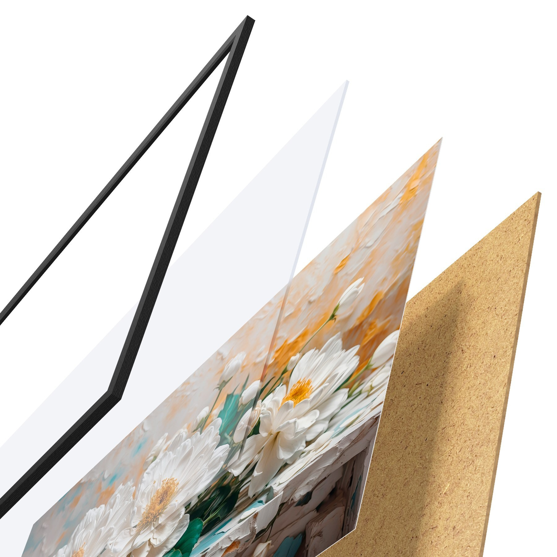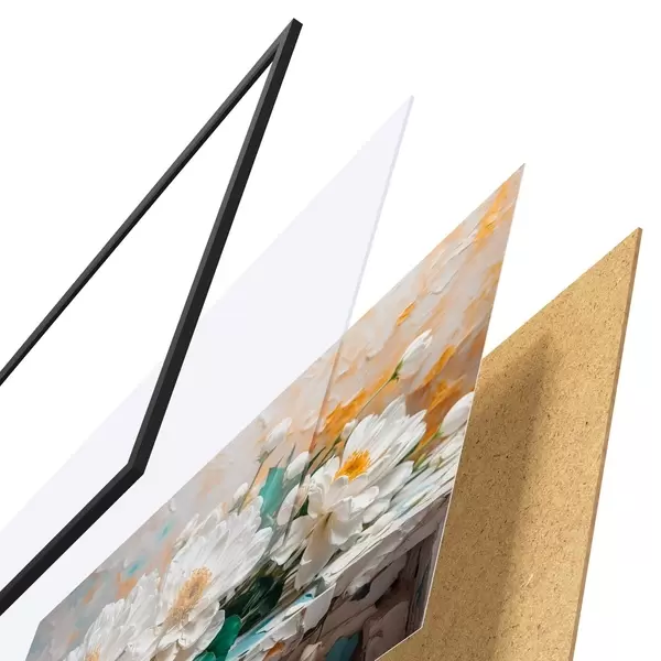 El póster consta de marco, plexiglás, imagen impresa y soporte de aglomerado. El póster puede colgarse inmediatamente en la pared gracias a los soportes de la parte posterior.