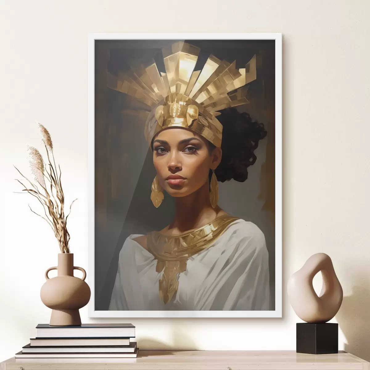 Poster Retrato de mujer con majestuoso tocado y adornos tradicionales f42931