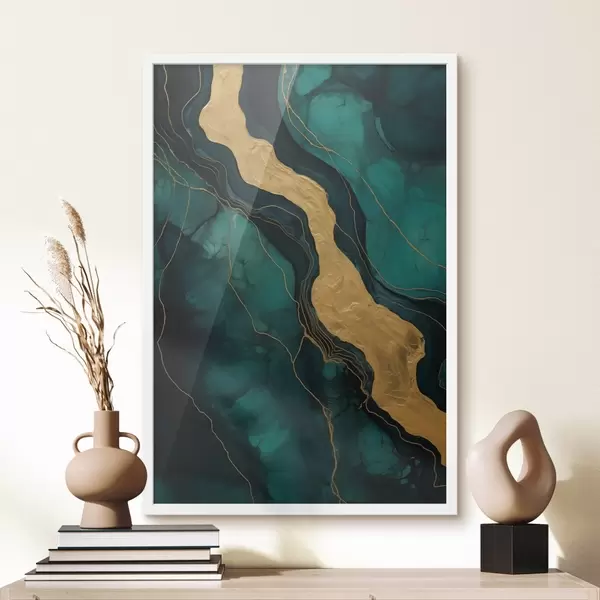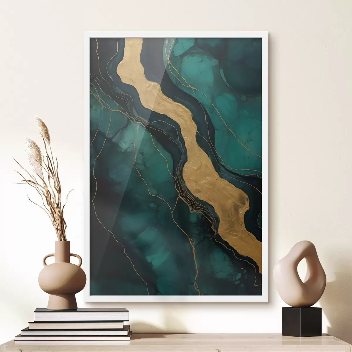 Poster Estampado abstracto con profundos tonos verdes y un cálido elemento de contraste Nr f42934