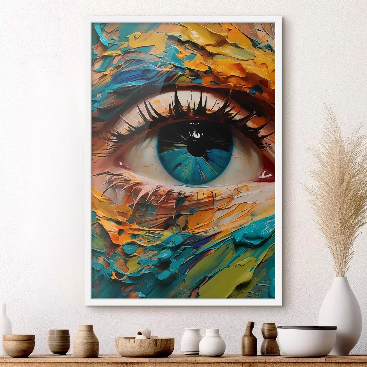 Poster Retrato abstracto de un ojo en colores vibrantes, con efecto de pintura texturizada Nr f42938