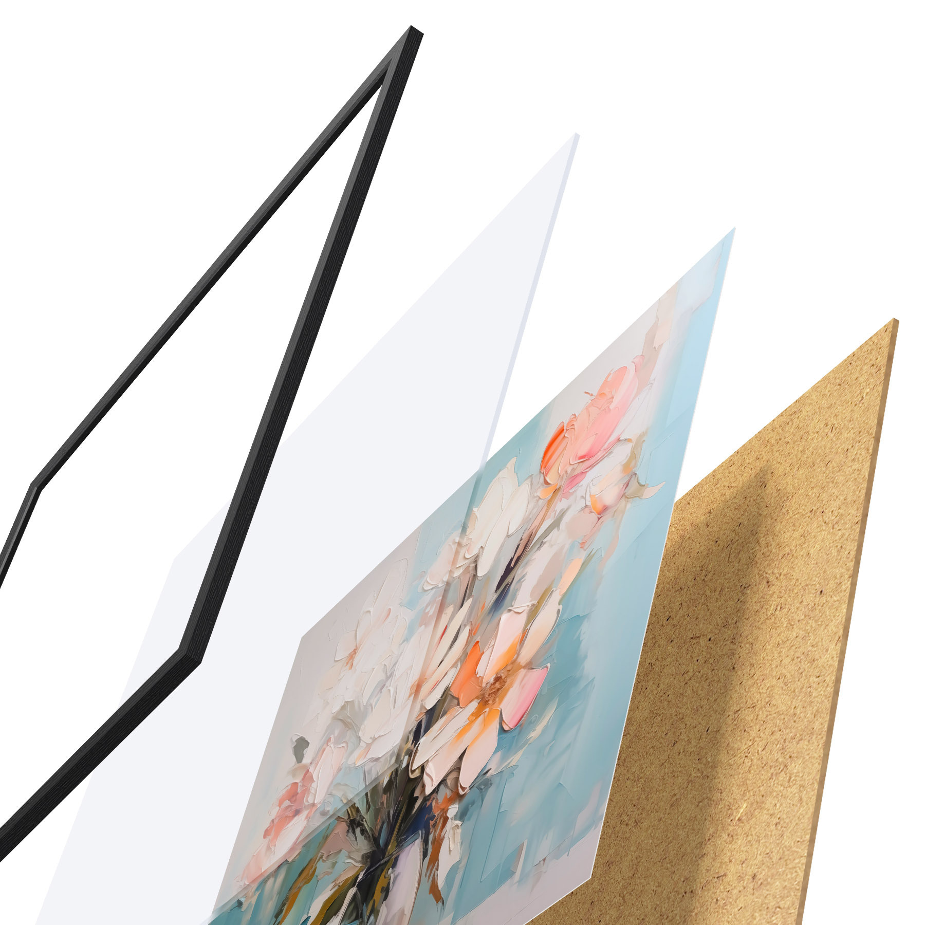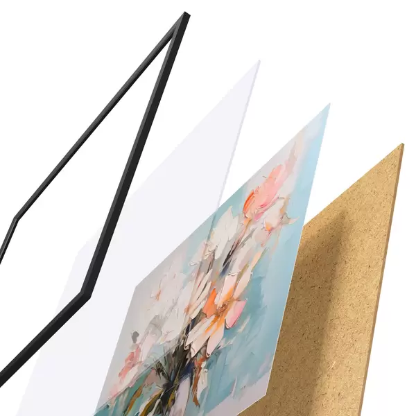 El póster consta de marco, plexiglás, imagen impresa y soporte de aglomerado. El póster puede colgarse inmediatamente en la pared gracias a los soportes de la parte posterior.