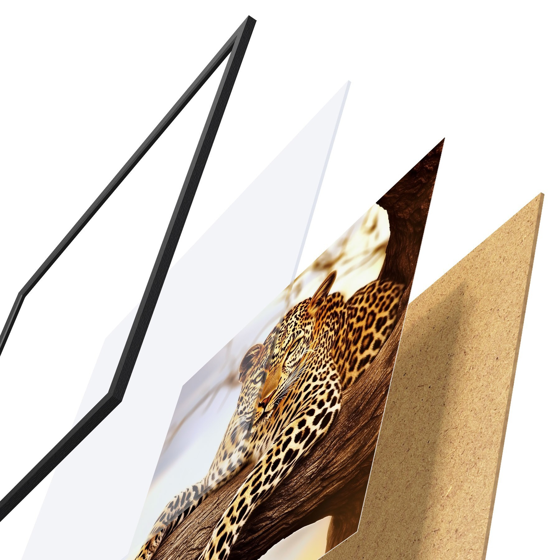 El póster consta de marco, plexiglás, imagen impresa y soporte de aglomerado. El póster puede colgarse inmediatamente en la pared gracias a los soportes de la parte posterior.
